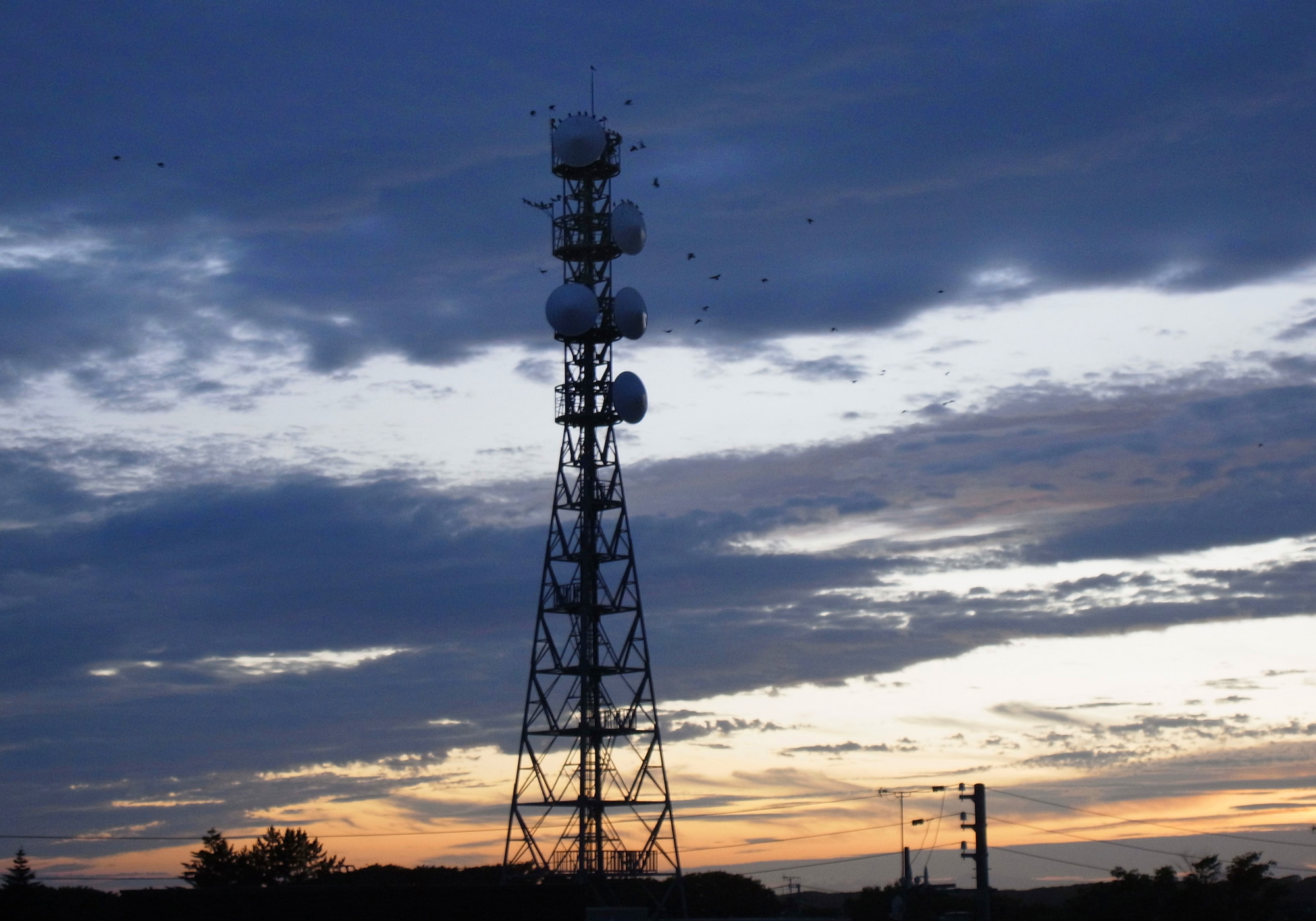通信塔の上が,カラスの就塒前集合の場所になっている