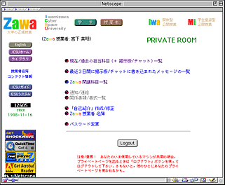 の個人インターフェースとして, 「プライベート・ルーム」(個人専用ページ)を用いている。