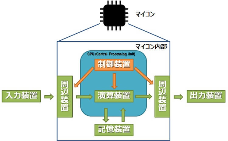 - 制御内容の変更や機能追加が,回路は変更せず内蔵するプログラムを書き換えるだけで行える