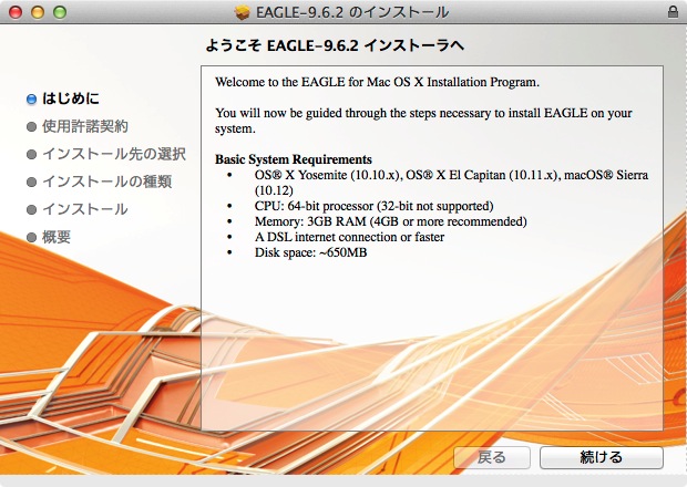 Autodesk_EAGLE_9.6.2_English_Mac_64bit.pkg がダウンロードされる