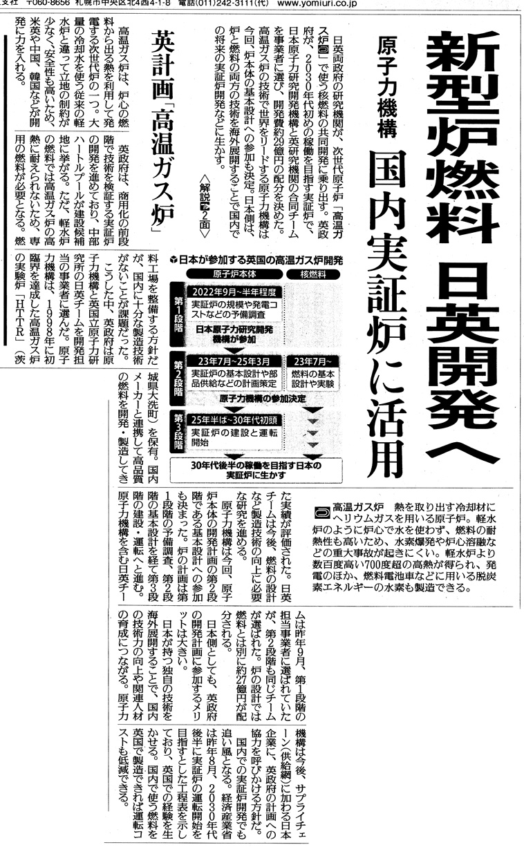 しかしひとは,<平均気温が上がる>は<CO2 排出によって地球が温暖化している>だと思う。 ひとは,そう思うように洗脳されてきた。 こうして「脱炭素」が,ひとの絶対善になる。 ひとは「脱炭素」のことばが付いていれば,何でも善にする。 そこで,EV は善である。 化石燃料車は,EV に替わらねばならない。 しかし EV を実現するには,いまの倍以上の電力量供給が必要になる。 そして原発は,CO2 を排出しない。 読売新聞曰わく: