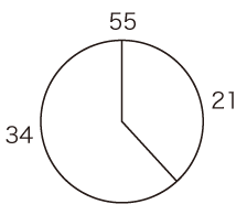 - 各フィボナッチ数n( =5, 8, 13, 21, 34, 55, ‥‥ ) に対し,黄金角のn回の回転で,円周にn個がほぼ等間隔に並ぶ。