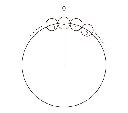 そこで,開始点Oから黄金角i回転に対応する円周上の点に数iを置いていくとき,つぎのことが成り立つ: