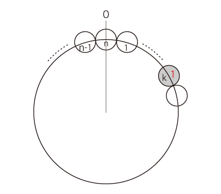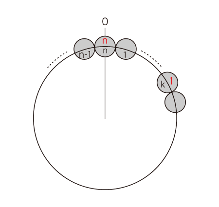 - さらに,「k跳びをn回やったとき,要素n個の配置がちょうど成っている」が条件。