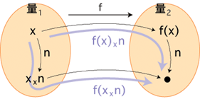 つぎに,関数「2m/秒」を f で表して,上の図を式に置き換えてみましょう。つぎにようになります: