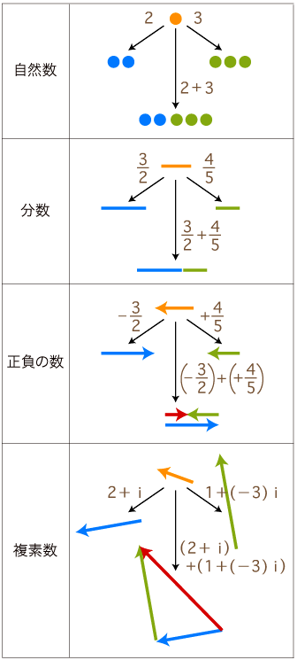 自然数,分数,‥‥ それぞれの数における求和アルゴリズムは,この関係を成り立たせるものとして導かれる。 ──このとき,各数の求和アルゴリズムは,互いに著しく違ったものになる。