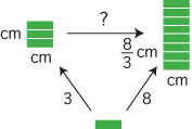 この長さをタテの長さとし,ヨコの長さが同じである長方形をとります。これによって,左右の長方形が 3 と 8 に共約されます: