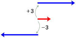直線上の移動では,逆方向の移動が考えられます。そして同じ大きさで逆方向の移動に対し,わたしたちは「相殺」という見方をします。