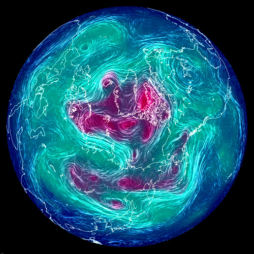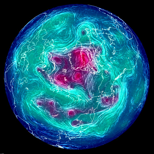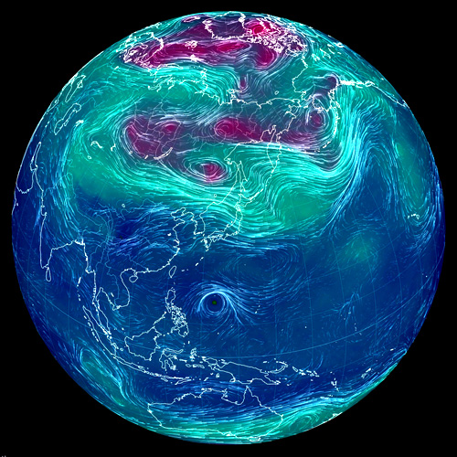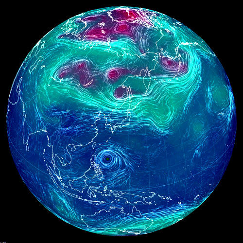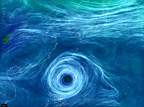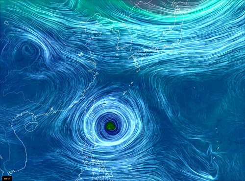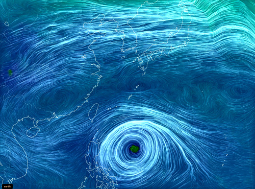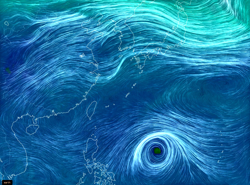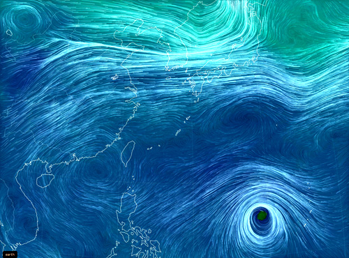 台風の渦の流れにブレーキがかかる対向構造ができる
