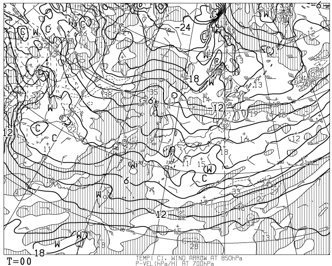 AXFE578 の下図のうち,P-VEL (hPa/h) AT 700hPa