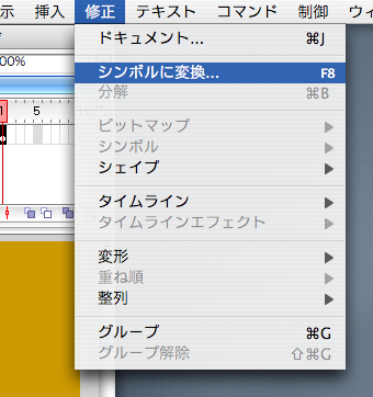 バーメニューの「修正」からつぎのようにたどって,「空白キーフレームに変換」を実行する。