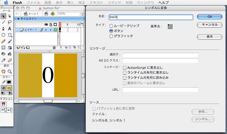 「シーン1」をクリックして,ボタンの編集から抜ける。